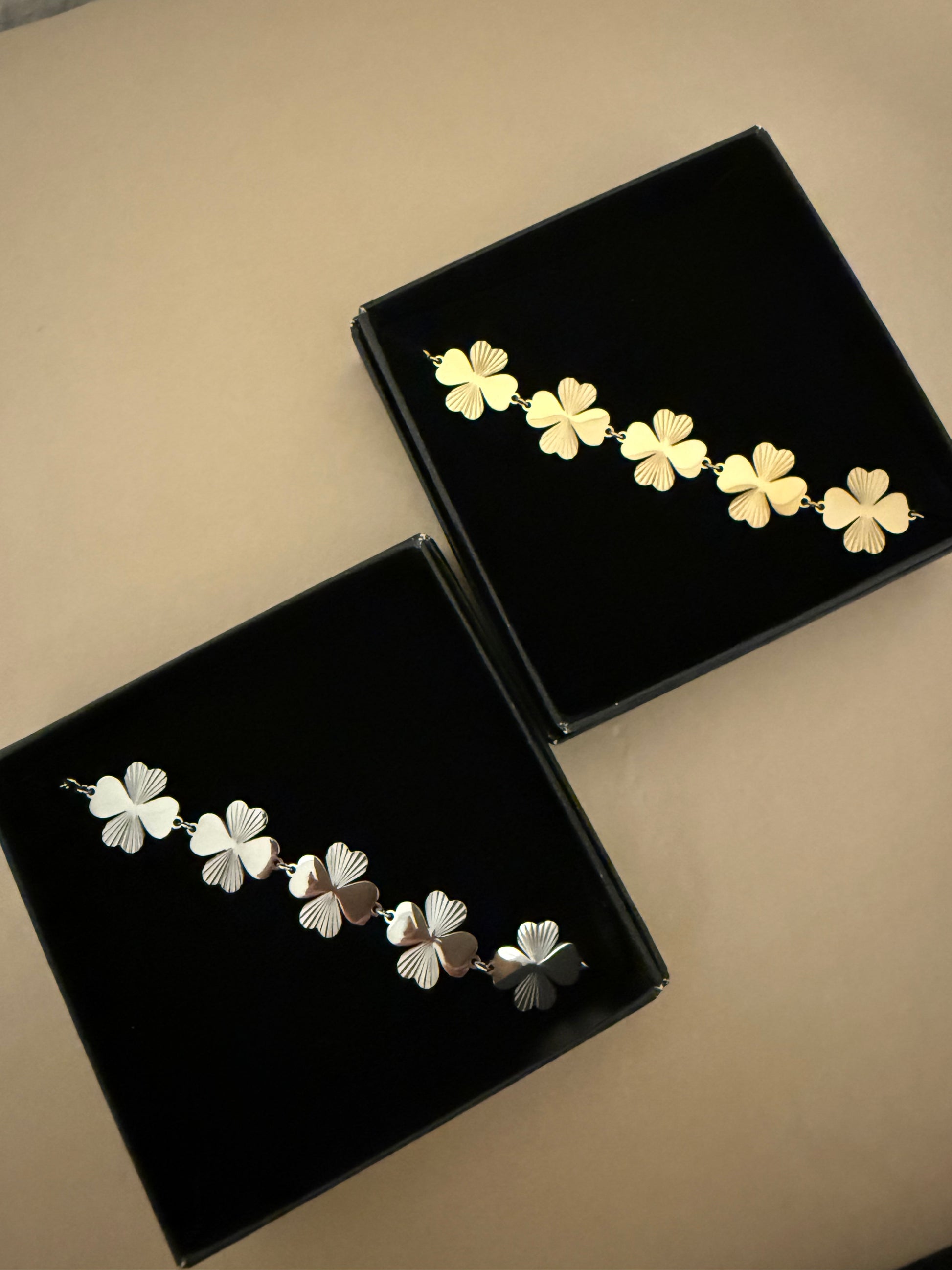 Vi pakker dine smykker ind i vores fine smykkeæsker (som er gratis) og med silkepapir.