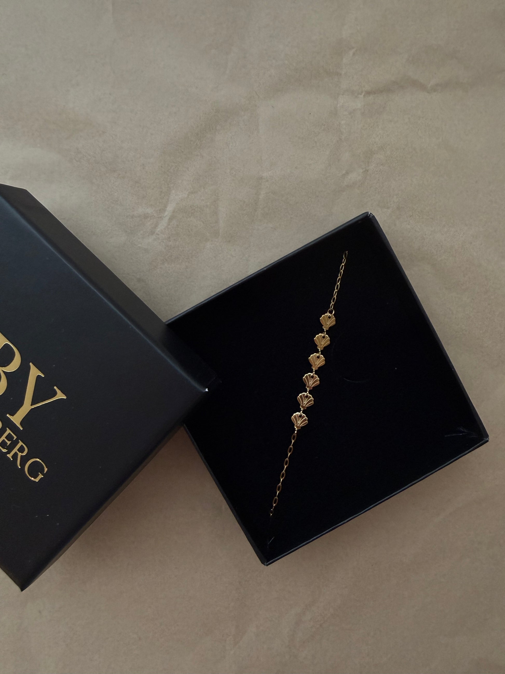 Det fineste Sea Shell armbånd i forgyldt rustfrit stål, med PVD belægning, hvilket gør det vandfast.