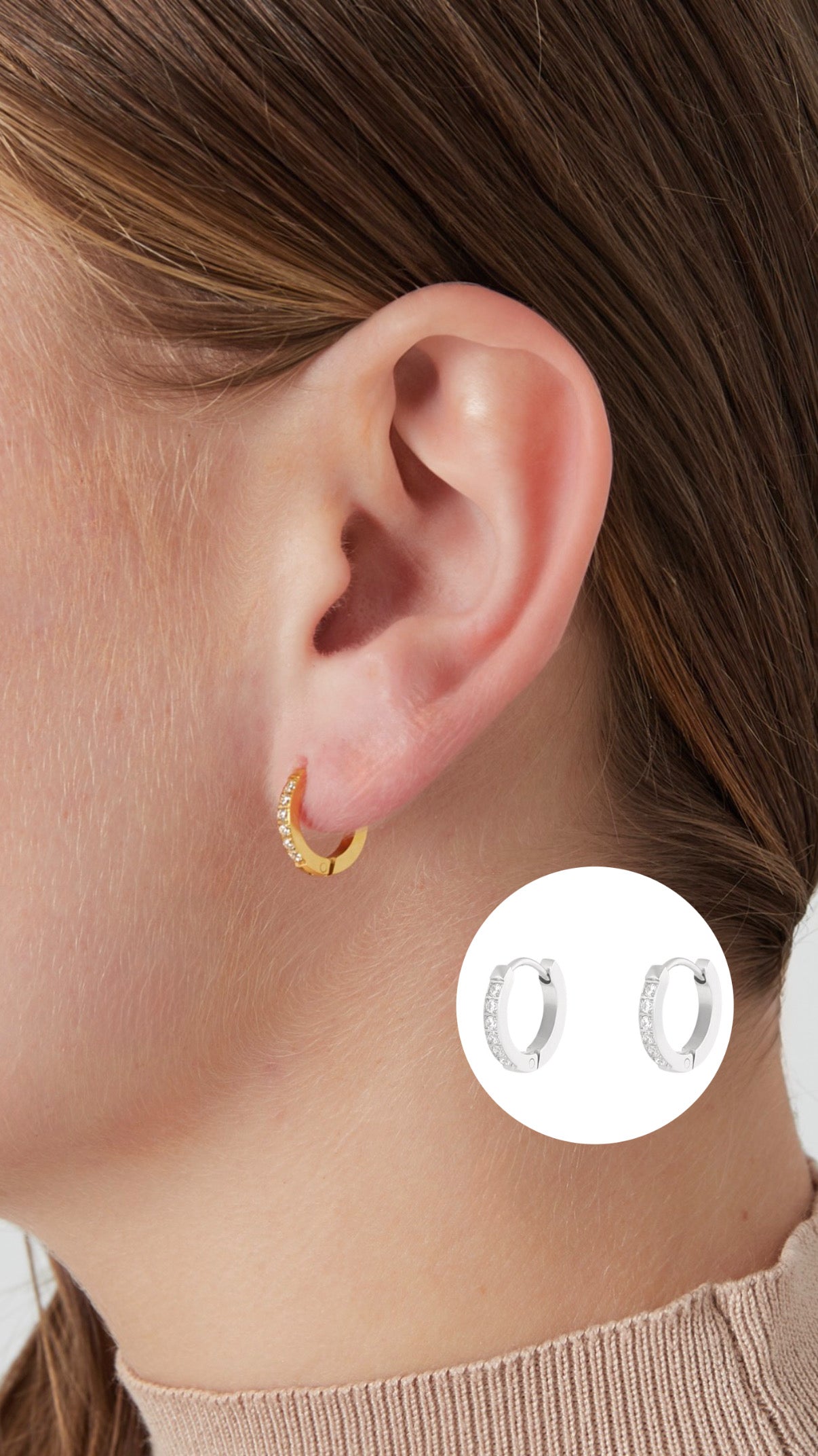 Alle vores smykker er af rustfrit stål – et holdbart og hudvenligt materiale, der tåles af langt de fleste. Har du dog meget følsomme ører eller tidligere haft allergi over for metaller, anbefaler vi, at du tester smykket kort tid ad gangen først. Vi kan desværre ikke garantere individuel kompatibilitet.