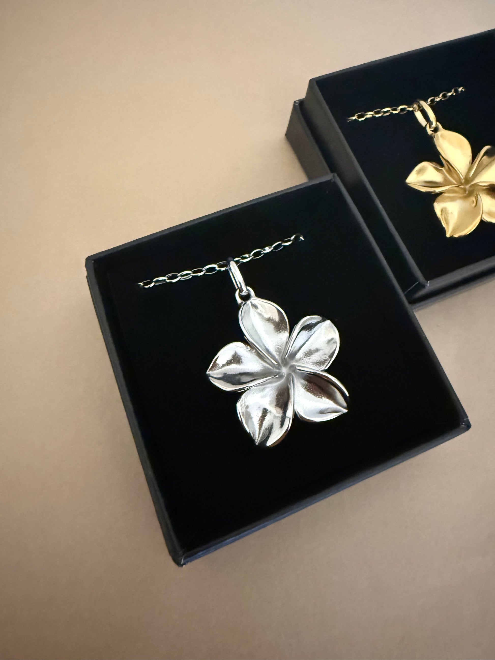 Vi pakker dine smykker ind i vores fine smykkeæsker (som er gratis) og med silkepapir.